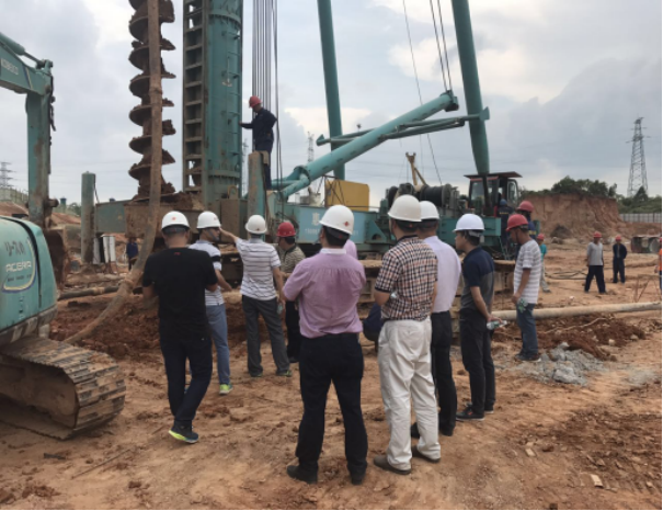 为更进一步了解螺杆桩新技术工艺,提升相关部门对螺杆桩新技术的应用能力,东部区域公司人力行政部于2017年6月2日组织了关于螺杆桩新技术工艺的考察活动。由集团投资–发展中心霍庆辉、东部区域公司合约管理部陈立雄、设计管理部刘华辉、东岸项目部汪明等人组成的考察小组前往惠阳进行考察。