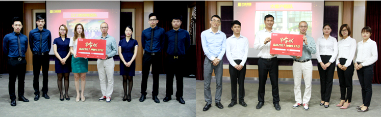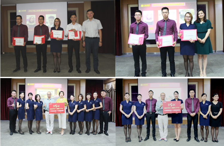 随后,会上为各项目的销冠和公司销售前三名颁发了奖牌和奖金,各个现场分享了个人心得和经验,鼓励所有人只要坚持努力就能取得优异的成绩。为了更好更有信心完成2017年全年工作目标,营销公司总经理林意江为各项目颁发了下半年销售目标军令状,惠州、江门、大客户组的团队纷纷上台宣誓并郑重接下军令状,保证完成下半年的销售任务。