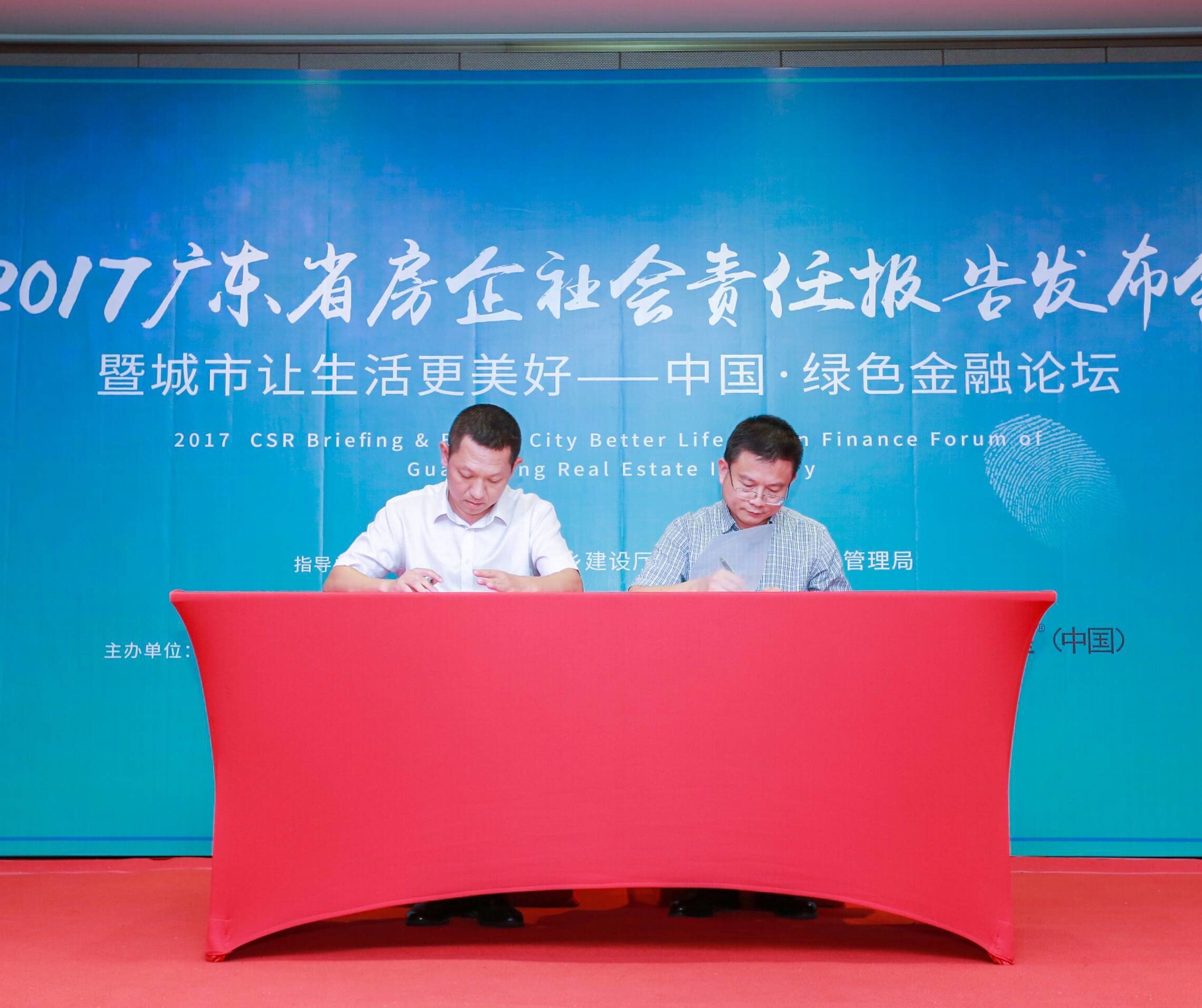 2018年9月4日,广东省房地产行业协会建行广州市绿色金融改革创新试验区花都分行,举行《2017年度广东省房地产企业社会责任报告》发布,并对品牌房企和优秀项目开通绿色融资通道。