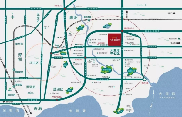 已经开通运营的厦深高铁惠州南站距离项目仅15分钟车程深大城际起自深圳机场,终点站预计设置在大亚湾客运站即项目北面1.2公里处,从本案至深圳宝安国际机场仅需约40分钟。